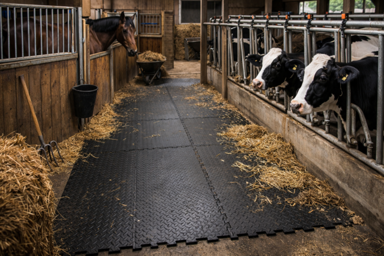 Besonders in Pferdeställen und Kuhställen werden hochwertige Stall Gummimatten eingesetzt, um sichere und langlebige Bodenlösungen zu schaffen. Die Matten verbessern die Trittsicherheit, entlasten Gelenke und Klauen und sorgen gleichzeitig dafür, dass Stallflächen leichter gereinigt werden können.